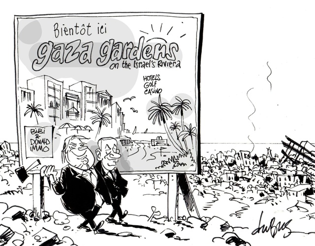 On sait depuis longtemps que l’entourage de Donald Trump a des vues sur le territoire, notamment en la personne de Jared Kushner, mari d’Ivanka Trump, magnat de l’immobilier et juif orthodoxe pro-Israël. «Gaza pourrait être mieux que Monaco», avait d’ailleurs expliqué Donald Trump lui-même en octobre dernier, lors d’une interview à une radio conservatrice. «C’est le meilleur emplacement du Moyen-Orient, le meilleur front de mer, le meilleur tout.»