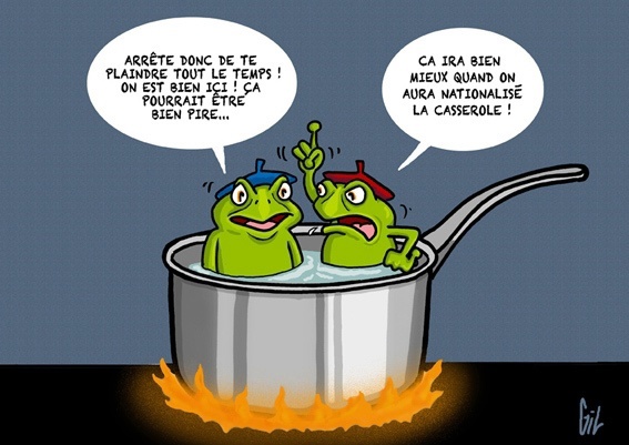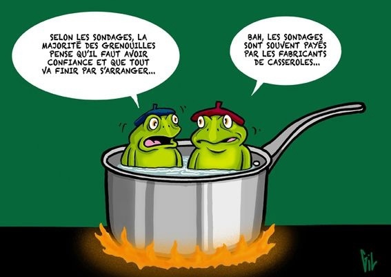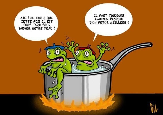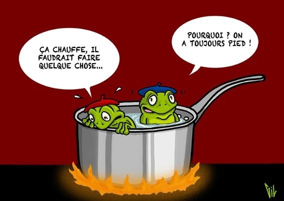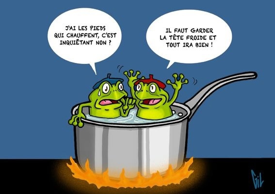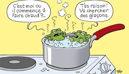 🚨 La grenouille se laisse ébouillanter. Elle n’a pas pris conscience que l’environnement changeait. L’expérience pourrait être faite dans l’autre sens. La température de l’eau baisse progressivement. L’eau se congèle et la grenouille est congelée.