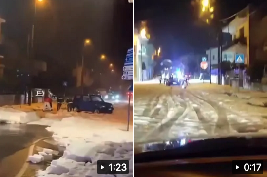 province de Lecce .. laissant de grosses accumulations de grêlons.. !