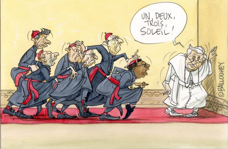 Après avoir rangé les bagages du Pape dans le coffre de la limousine, le chauffeur réalise que le Pape est resté sur le trottoir.
