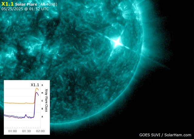 L’Ă©ruption X1.1 d’une durĂ©e de dix-sept minutes a Ă©tĂ© enregistrĂ©e dans la bande de rayons X dans le groupe de taches 4098.
