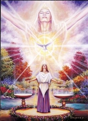 La descente de la lumière passe en général par la tête comme pour les apôtres, mais elle peut passer par le Cœur.. (dans le dos au niveau du chakra du cœur, il y a une porte)