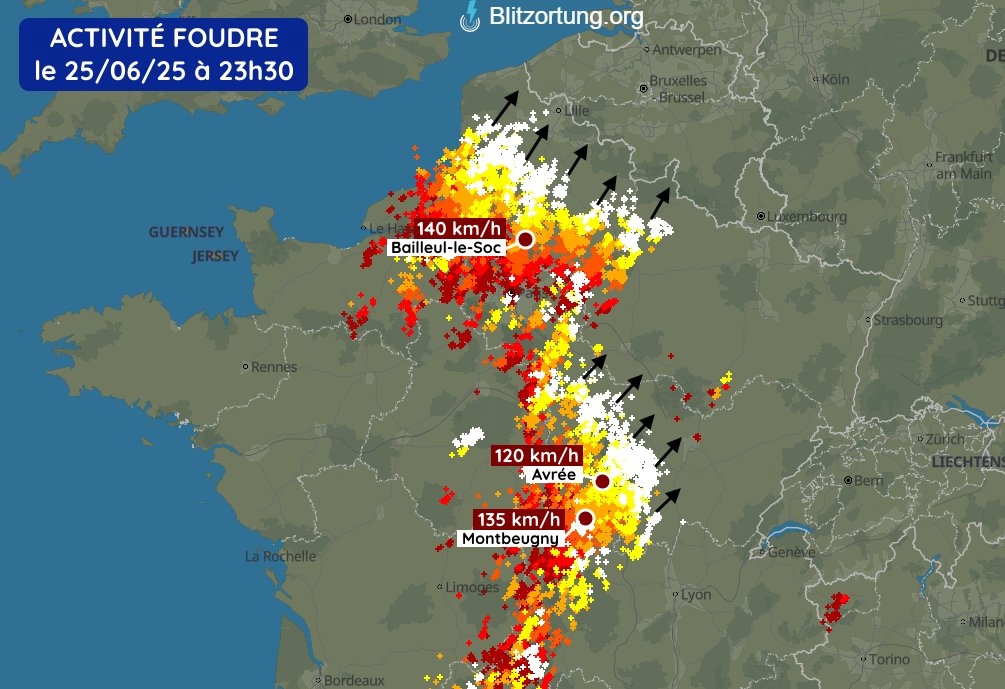 Dans la capitale, de nombreux internautes ont relayé des vidéos des impressionnants orages en cours dans la soirée. Des éclairs, des coups de vent de plus de 90 km/h et des pluies diluviennes ont déferlé sur Paris. Le « violent orage » a balayé Paris avec des « éclairs incessants, des bourrasques et des pluies torrentielles ».