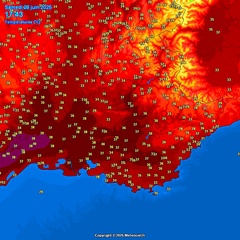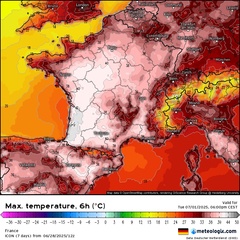 Pic de la canicule attendu la semaine pro. Valeurs très intenses : 40°C pouvant être atteints/dépassés selon les modèles, des Pyrénées à l’Ile de France. Installation d’un dôme de chaleur, agissant comme un couvercle en piégeant et amplifiant la chaleur.