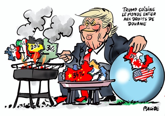 cette semaine, “Trump a envoyé vingt-deux lettres à des pays du monde entier, y compris à des partenaires commerciaux comme le Japon, la Corée du Sud et le Sri Lanka, décrivant les nouveaux droits de douane qui s’appliqueront à leurs marchandises”.