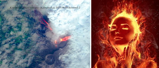Avec le magma (le sang de la terre) et les volcans, C’est le Feu intérieur ..… les artères, les veines deviennent des rivières de Feu.. du magma, normal, les particules adamantines sont des particules de feu, les agni devas…
