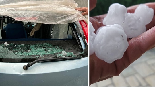 Bombardement de grêle sur la commune de Pavone Canavese, Italie, Piémont..1.9/2025