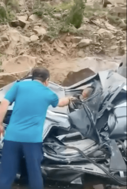 Alors hasard ou pas hasard sourire, la personne prisonnière dans la voiture n’a rien, y a pas eu de blessé..