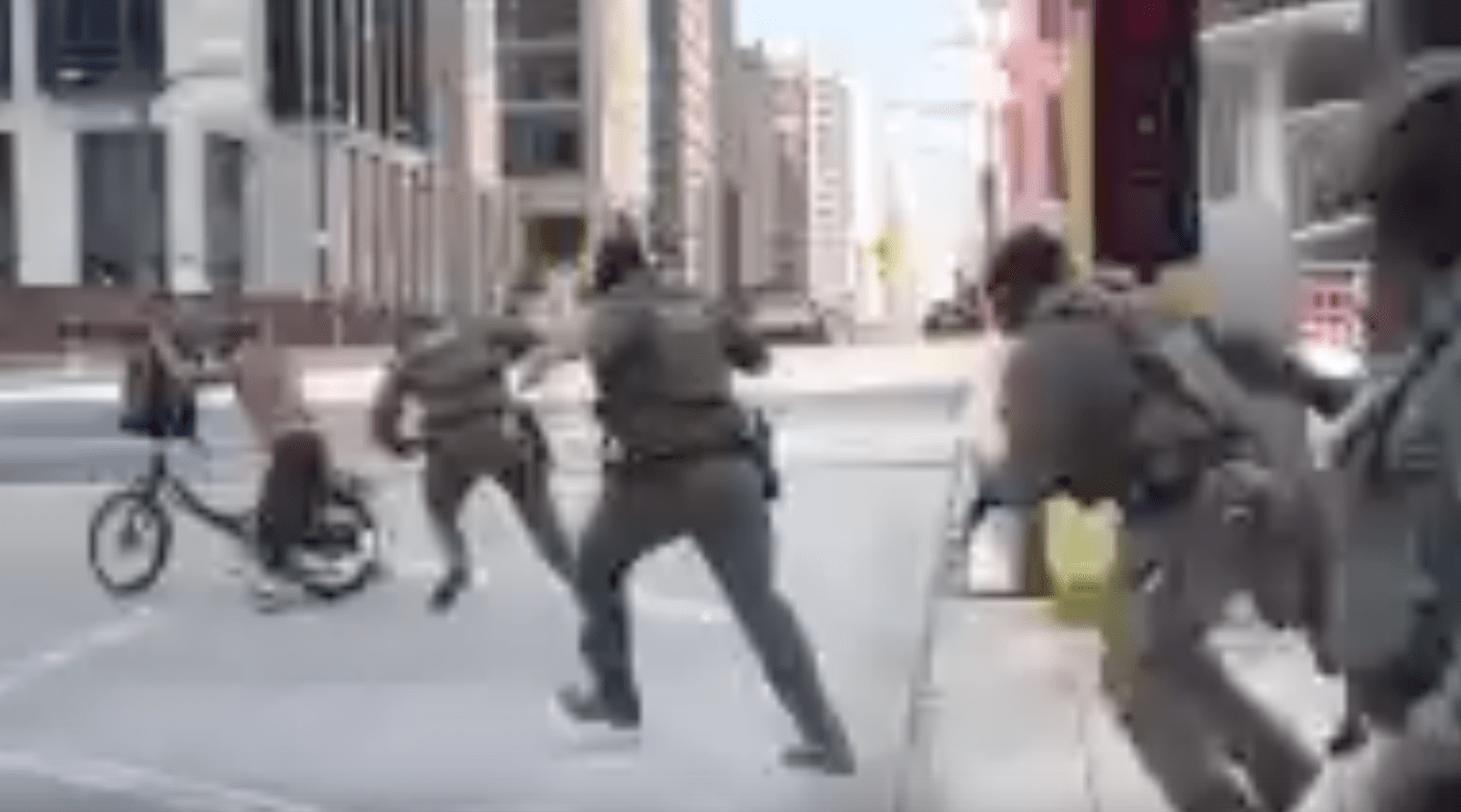 États-Unis : Dans cette vidéo devenue virale, des agents de l’ICE (Service de l’immigration et des douanes des États-Unis), en tenue tactique, lancent une course-poursuite contre un livreur de nourriture à vélo… L’homme a finalement réussi à s’échapper !