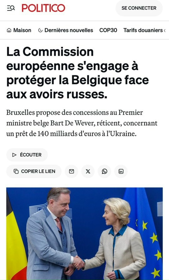 Et pendant quâon presse les peuples, la Commission rĂȘve encore de piocher 140 milliards dans les avoirs russes gelĂ©s, au risque de dynamiter la confiance des investisseurs.