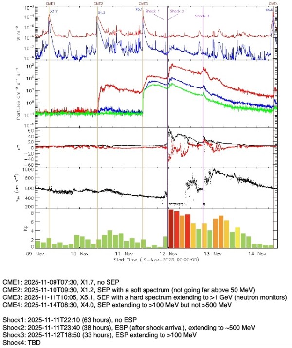 🚨🚨 Les quatre éjections de masse coronale (CME), toutes accompagnées d'une éruption de classe X, dans la région active 14274 sont désignées CME1 à CME4, et les ondes de choc qu'elles ont engendrées sont appelées Choc 1 à Choc 4, telles qu'observées près de la Terre. Après Choc 2, suivi d'une tempête de classe G5,... Lire la Suite →