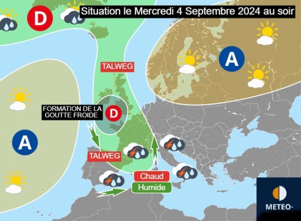 Un talweg est en train de plonger vers la Méditerranée et va générer une dégradation pluvio-orageuse IMPORTANTE dans le sud-est dès ce mercredi 4 septembre 2024.Cumuls conséquents en l'espace de quelques heures.Plus la vapeur d'eau présente dans l'atmosphère se condense, plus les pluies sont diluviennes..Or, on observe des taux d'humidité, particulièrement élevés dans toute la... Lire la Suite →