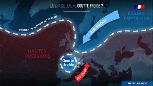Une goutte froide se met en place sur le proche Atlantique.Comme on peut le voir sur la carte...la dépression, masse d'air froid se trouve entre 2 anticyclones masse d'air chaud.. La Goutte Froide...C'est la hantise des météorologistes et prévisionnistes ..C'est une dépression avec de l’air froid en altitude qui est sortie de la circulation atmosphérique... Lire la Suite →