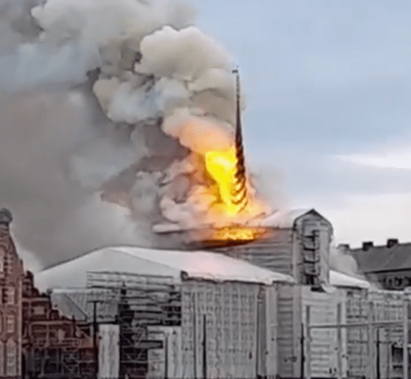 Les flammes ravagent la vieille bourse de Copenhague, datant du XVIIe siècle, provoquant l'effondrement de sa flèche. https://vk.com/video647796984_456245194