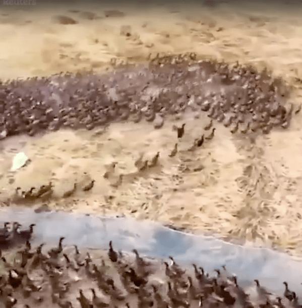 Environ 10 000 canards sont envoyés manger des insectes dans une rizière après la récolte en Thaïlande… Coin coin !! https://vk.com/video647796984_456245189