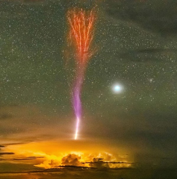 Photo en bas : une autre capture de Jet au Japon (28/10/2022).Les jets géants sont rarement observés, ils sont au dessus des orages.. Leur durée est de l'ordre de la demi-seconde ou milli-seconde ..Le changement de couleur et de structure du jet en fonction de l'altitude correspond à différentes valeurs d'énergie des particules impliquées dans... Lire la Suite →