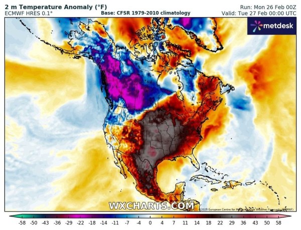 Une vague de chaleur extrême et historique de fin d’hiver s’abat sur l’Amérique du Nord. Des dizaines de records mensuels seront balayés du Texas vers l'Ontario.