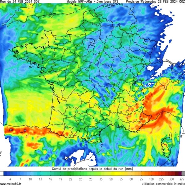 Mais un temps quand même agité avec pas mal d'eau et des rafales de vents, voire de la grêle.. Que d'eau pour ses 7 prochains jours en France ! Attention Sur les 15 prochains jours l'anomalie dépressionnaire est toujours scotché sur l'Europe de l'ouest.