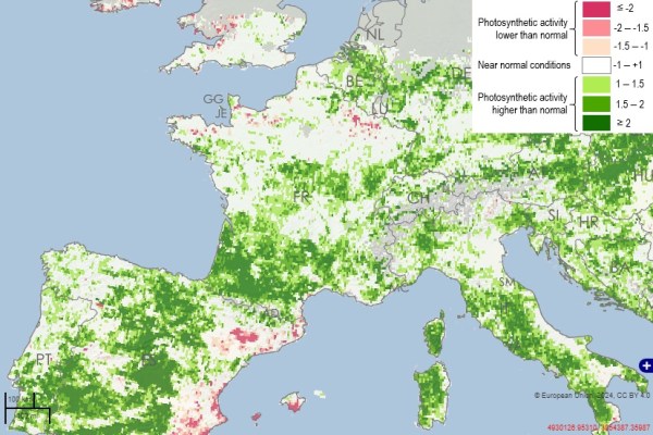 Après trois semaines de grande douceur, la végétation s'est réveillée et a pris beaucoup d'avance. Toutes les zones en vert sur la carte ci-dessous montrent les régions où l'avance est la plus forte.