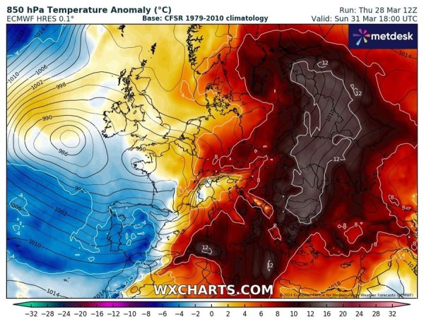 Surchauffe XXL de l'Europe de l'est pour le week-end de Pâques à l'avant des dépressions sur l'Europe de l'ouest