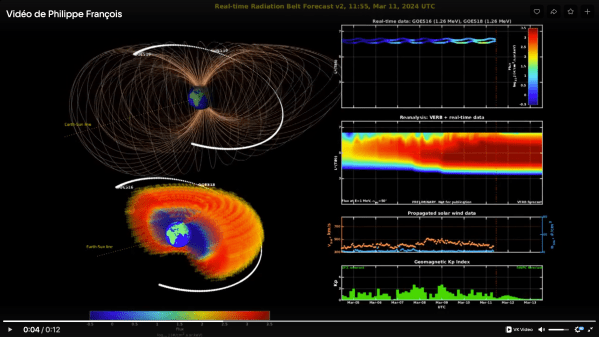 Regard sur la ceinture de rayonnement terrestre..Rayonnements solaires, cosmiques, indices KP..Ce 11 Mars, le moniteur de courant d'anneau montre une charge très élevée affectant l'ionosphère et se propage dans la biosphère terrestre.La carte de l'électricité atmosphérique montre que la courbe descendait jusqu'à 21 h. Puis un arrêt de quatre heures à 1496 mV a suivi,... Lire la Suite →