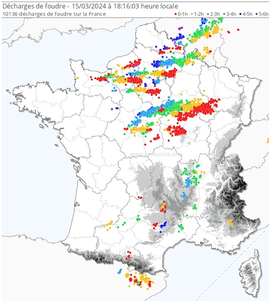 Plus de 10.000 éclairs détectés sur la France au cours des 6 dernières heures : Le 15 mars est d'ores et déjà la journée la plus orageuse de l'année 2024. https://vk.com/video647796984_456245089