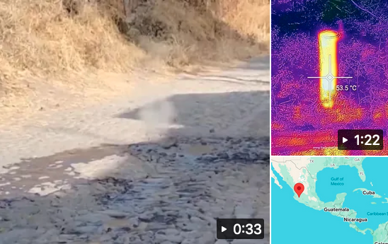 Mexique 28.1/2025 phénomène géologique...Des rapports font état d'eau chaude et de vapeur sortant du sol à Zacoalco de Torres, Jalisco. https://vk.com/video647796984_456246236 https://vk.com/video647796984_456246235