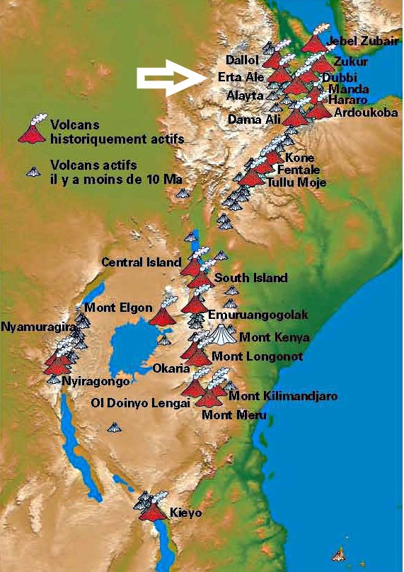 5.1/2022volcan Erta Ale en Éthiopie en éruption . C'est un des principaux «points chauds» de la planète, l'une de ces fissures géantes par où remonte le magma venu des entrailles de la terre, du manteau.. ( zone comprise entre la croûte terrestre et le noyau en fusion )il est positionné sur la limite des plaques... Lire la Suite →