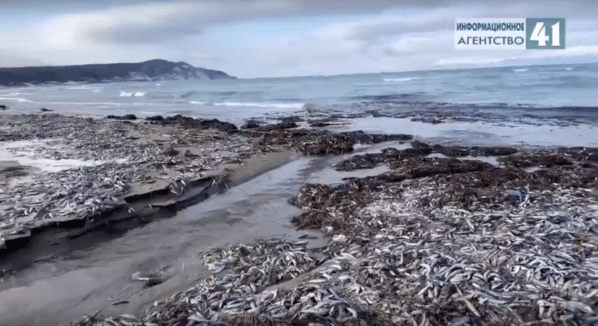 11.1/2023 RussieComme dans le Finistère , dans la baie de Douarnenez ,Plusieurs dizaines de milliers de sardines ont été découvertes échouées .. , Sur l'île de Kunashir, en Russie. Vidéo: https://vk.com/video647796984_456242778 https://www.cnews.fr/faits-divers/2023-01-11/finistere-des-milliers-de-sardines-retrouvees-echouees-sur-une-plage-sea