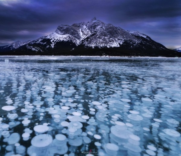 En photo 9.1/2023 Alberta Abraham Lake , beaucoup de bulles de méthane gelées 🚨 le Méthane au moment de l'allumage est un gaz qui permet au feu de bruler dans l'eau.. C'est l'une des manifestations qui apparaîtra de plus en plus sur la planète , elle est liée à la fusion des éléments entre eux...ou l'eau et la... Lire la Suite →
