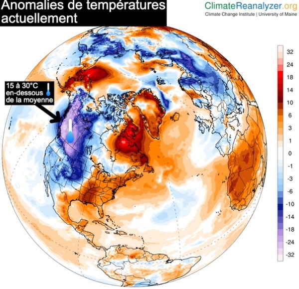Après une fin d'année particulièrement douce, un froid intense s'est de nouveau imposé sur la partie Ouest du Canada et des USA avec une température minimale de -13°C à Vancouver (Colombie britannique), ce matin et -49°C à Watson Lake Yukon Canada.-45.9°C à Edmonton, le record de -44.4°C battu ! https://vk.com/video647796984_456244863