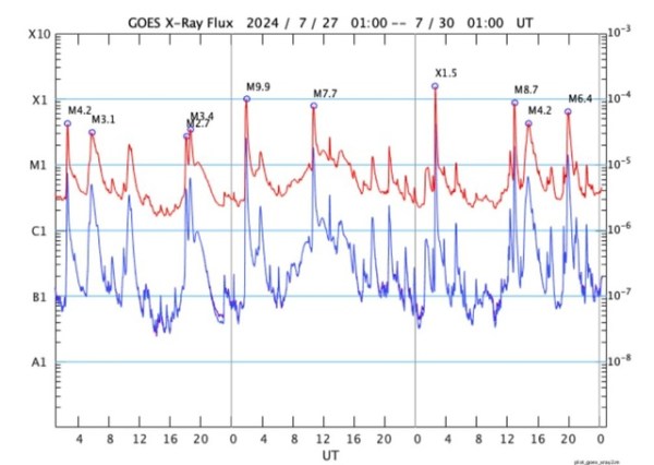 ... d'autres sont à suivre, les 26 /27/et 28 Juillet plusieurs CME cannibales se sont succédées... L'activité solaire a considérablement augmenté au cours des dernières 24 heures (de 11 UTC hier à 11 UTC aujourd'hui). Nous avons observé sept éruptions de type M, dont trois supérieures à M5, et une éruption presque X, une M9,9.... Lire la Suite →