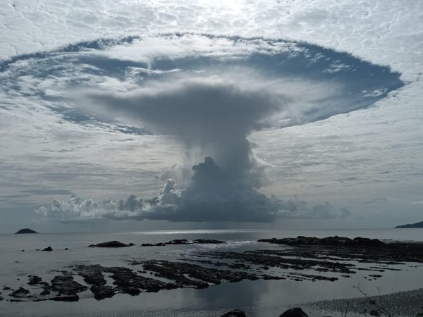 25 Juillet 2022 Guyaneobservé à Rémireune immense trouée de virga ou percée ou trou de chute en forme de champignon atomique....ce phénomène inexpliqué est également appelé " Punch Hole Clouds " ou Cavum ou fallstreak ..Bien sur , les experts en Rien , les champions du monde , les scientifiques de l'astral , les moldus... Lire la Suite →