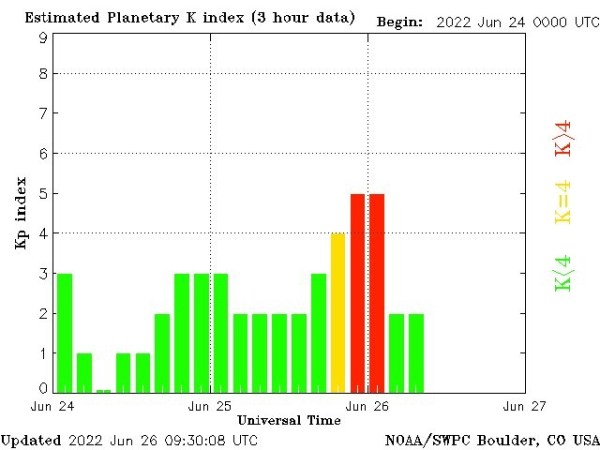 Arrivée d'une tempête géomagnétique le mardi 28 Juin 2022et il y a eu aujourd'hui 26 Juin de matin une tempête géomagnétique.. https://vk.com/video647796984_456241609