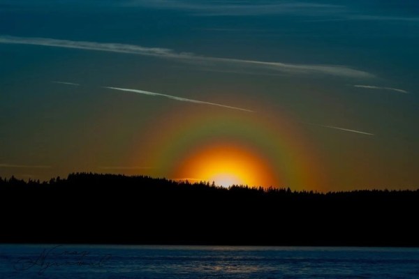 Couronne de pollen.. Couronne Solaire irisée.c'est dû à la présence de pollen dans l'atmosphère.Le phénomène donnant naissance à la couronne irisée est un phénomène de diffraction. La lumière se trouve diffractée par le bord des grains de pollens et donne lieu à un phénomène d'interférences. Pour une longueur d'onde donnée, on observe un renforcement de... Lire la Suite →