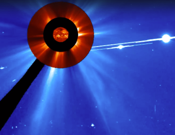 Comme, si Cela ne suffisait pas, une comète plonge dans le Soleil visible à 6 heure dans la moitié haute de la vidéo.. https://vk.com/video647796984_456245346