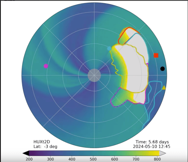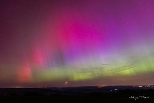 Des vagues successives d'éjections de masse coronale frappent la Terre les 11 et 12 mai. Des vitesses de vent solaire d’environ 800 km/s sont possibles. Tempêtes géomagnétiques fortes et prolongées avec des aurores visibles à des latitudes basses.La terre répond déjà au Guatemala avec le volcan Santa Maria.. Aurore boréale en France, depuis le Mont... Lire la Suite →