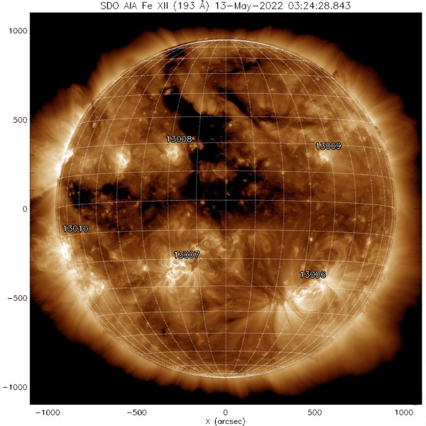vendredi 13 en un jour de chance pour les observateurs d'aurores à haute latitude. Des tempêtes géomagnétiques mineures de classe G1 sont possibles un CME effleure le champ magnétique terrestre. également le vent solaire provenant d'un trou coronal qui s'est ouvert face à la Terre devrait atteindre la Terre les 16 et 17 mai , pendant... Lire la Suite →