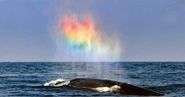 Baleines et irisations ..La réfraction des rayons solaires par chacune des gouttes d'eau. ,à travers le prisme de l'eau..La réfraction décomposant la lumière blanche du Soleil selon les couleurs du spectre Arc en ciel.... dispersion ou déploiement.. ces 7 couleurs nous relient à la lumière originelle.....C'est des subdivisions , des bandes de fréquences couleurs ,... Lire la Suite →