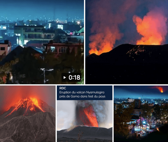 Éruption intense du volcan Nyamulagira C'est un stratovolcan ( 3500 m ) et le volcan le plus dangereux d'Afrique.. il est situé dans la vallée du Grand Rift. https://vk.com/video647796984_456246393