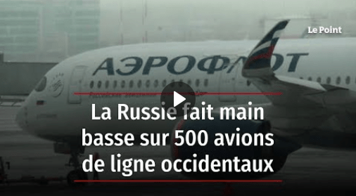 Contre mesure.. Nationalisation , confisqués les avions..La Russie fait main basse sur 500 avions de ligne occidentauxCes appareils Airbus et Boeing sont perdus pour leurs loueurs. Le capital confisqué dépasse 10 milliards de dollars. https://www.youtube.com/watch?v=vTcMnIpbGqA