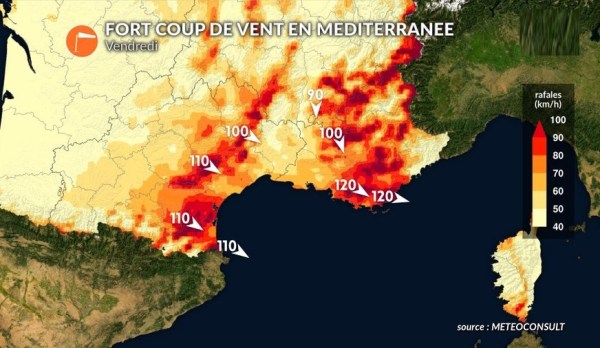 Ce soir et la nuit prochaine en MéditerranéeDes rafales de force tempête sont attendues en PACA et Languedoc-Roussillon
