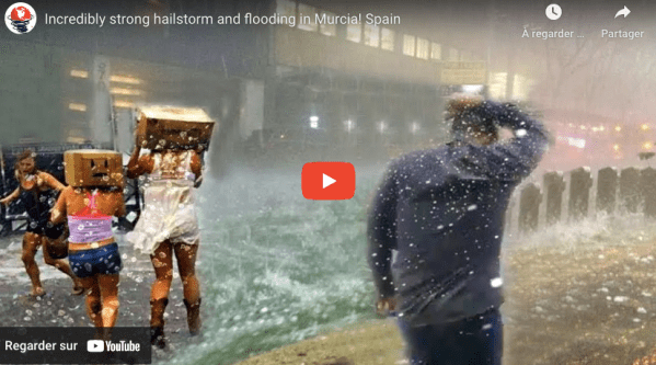 Espagne Murcie 22.6/2023 tempête de grêle et inondations.. la grêle est de plus en plus fréquente et cela dans tout les pays , sur tout les continents.. l'impact grandit.. elle est un élement important de la dissolution.. https://youtu.be/9W4Kv4KqsOU
