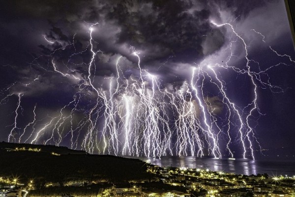 Turquie Bursa 16.6/2023Image composite rassemblant les foudroiements à Mudanyaentre 22:58 - 23:48