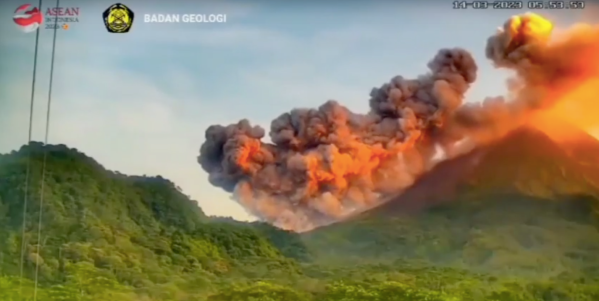 14 Mars 2023 Volcan MerapiCoulée ou nuée ardente https://vk.com/video647796984_456243255 Indonésie 11.3/2023Volcan Merapic'est un volcan qui produit des nuées ardentes des avalanches de nuages de gaz brûlant ,de lave, de cendres et de fragments de roche dévalant la pente à très grande vitesse (jusqu'à 700 km/h)forçant les autorités à suspendre les activités touristiques et minières sur les pentes du volcan le... Lire la Suite →