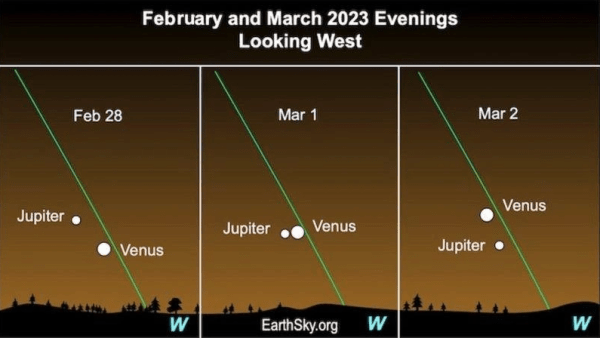 Conjonction , communion , allumage Venus Jupiter..Jupiter est la plus grande observable à l'œil nu ...Il est comme un deuxième Soleil , il se transforme en Pulsar ,Un Pulsar émet des rayonnements proches du Soleil mais cen'est pas un Soleil..le rayonnement de toutes les planètes de ce système solaire changent profondément.Venus la planète de l'Amour.. Vénus... Lire la Suite →