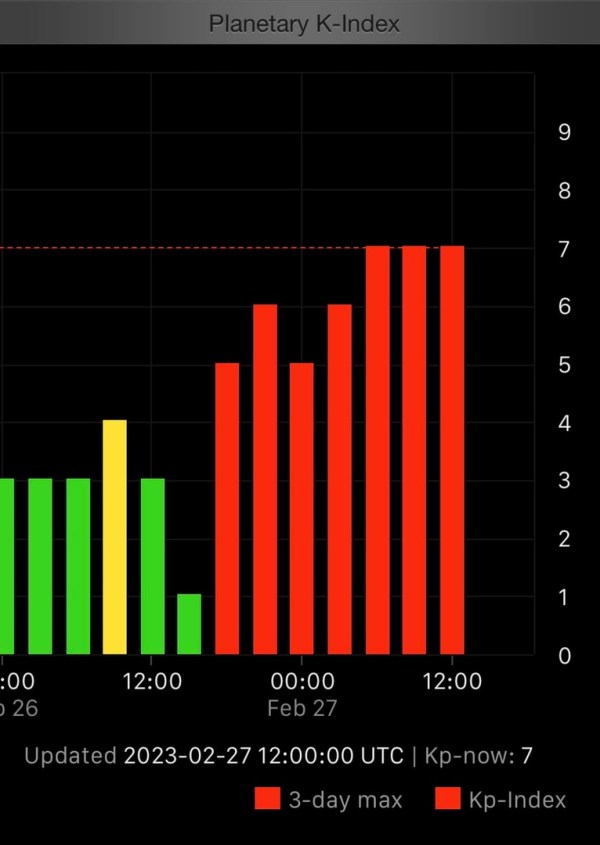 et Oui c'était un KP7c'est à dire une forte tempête géomagnétiqueL'indice Kp est un indicateur global de l'activité des orages géomagnétiques, dont l'intensité se mesure sur une échelle de 0 à 9.Sur la base de l'indice Kp et du degré de latitude sur lequel on se trouve on peut immédiatement savoir s'il y a une... Lire la Suite →