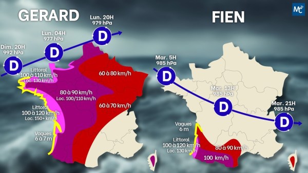 Turbulences.......2 Tempêtes..Entre ce soir et jusqu'en fin de journée de mardi, nous allons être concernés par 2 systèmes.Gerard dès ce soir. Fortes rafales, surtout le long de la façade Atlantique Nord & Manche Ouest. Conditions aussi tempétueuses présentes dans les terres.Une autre dépression dénommée Fien est attendue pour mardi matin notamment sur la sud-ouest et... Lire la Suite →