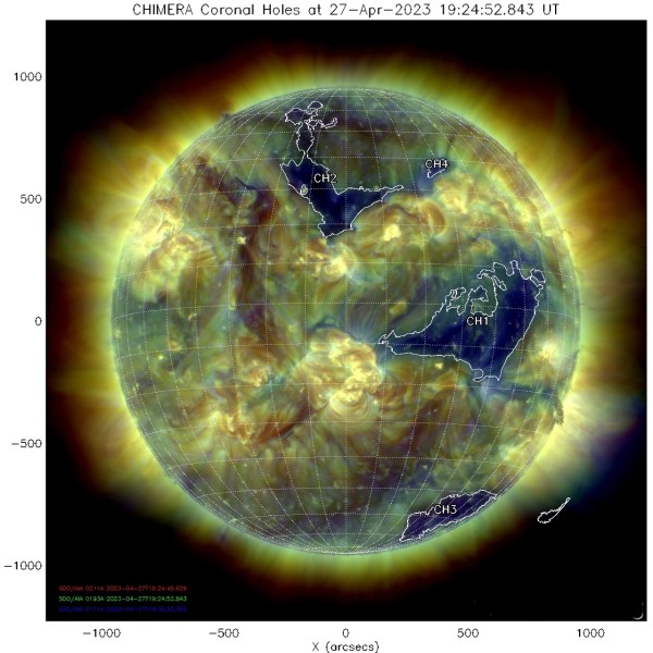 Onction Céleste , Baptême , Sang Graal , pour remplir le Calice..Le vent solaire provenant de ce trou coronal équatorial devrait atteindre la Terre , aujourd'hui 28 avril.