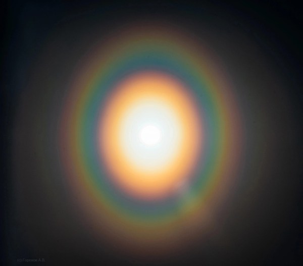Russie 21avril 2023Couronne de pollen à Tula ...œuf aurique..Le phénomène donnant naissance à la couronne irisée est un phénomène de diffraction. La lumière se trouve diffractée par le bord des grains de pollens et donne lieu à un phénomène d'interférences: pour une longueur d'onde donnée, on observe un renforcement de l'intensité lumineuse selon des cercles concentriques.Le... Lire la Suite →